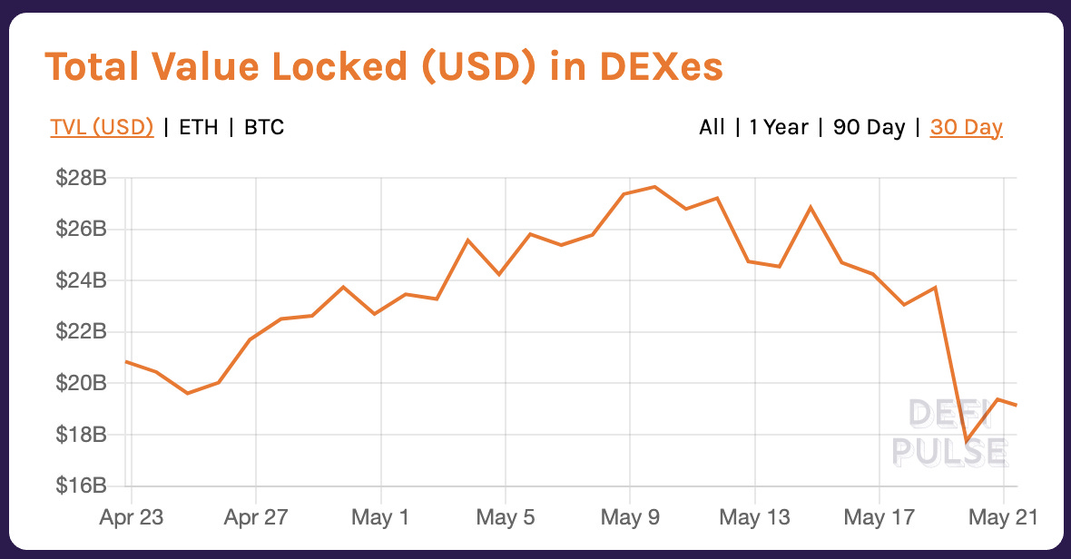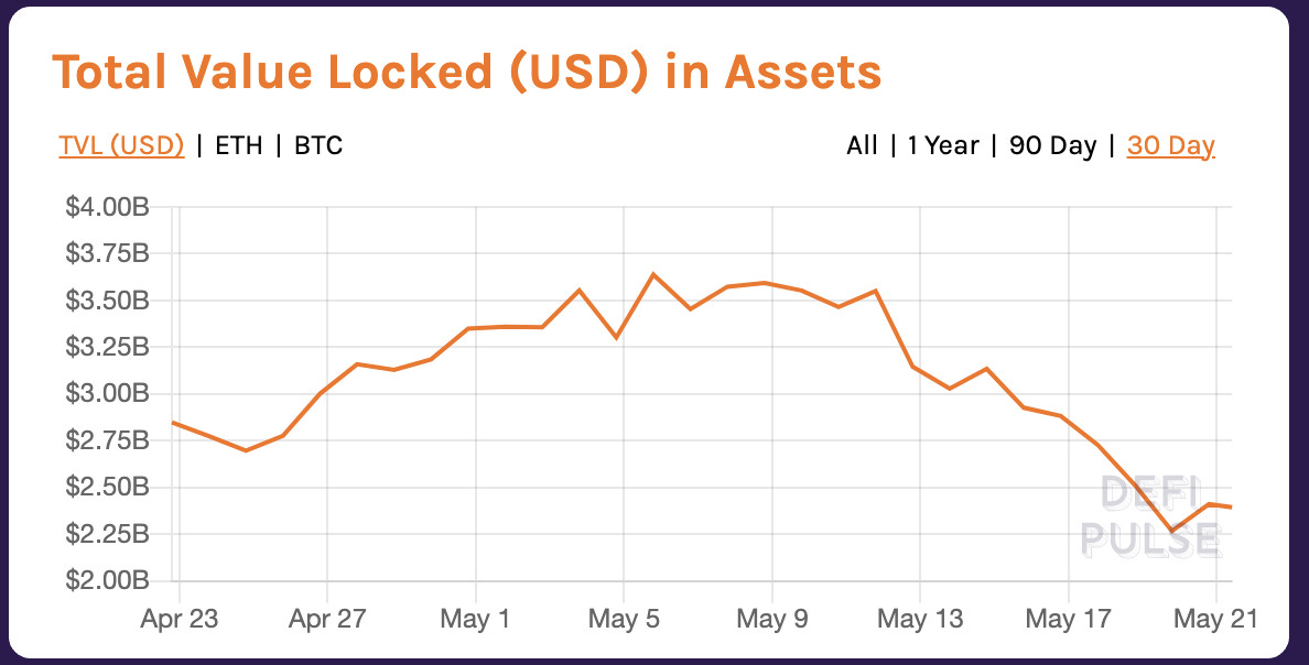These platforms definitely saw a larger decrease in their Total Value Locked (you can think of this as assets under management), dropping from ~3.5b last week to 2.26b at the bottom: