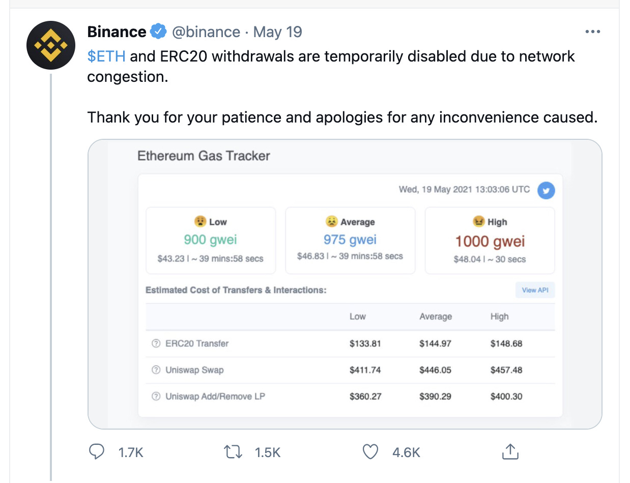 Hopefully as the layer 2 solutions like Optimistic and ZK Rollups launch throughout this year, Ethereum gas fees will come down considerably, preventing this kind of insane price jumping in the future.